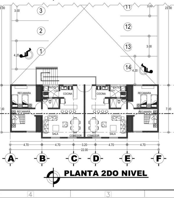 14 parking spaces
